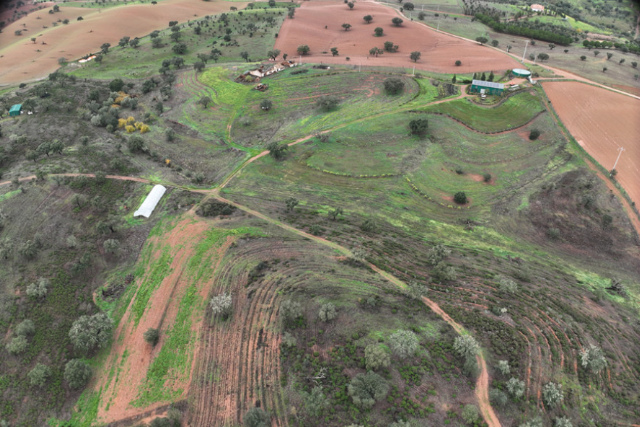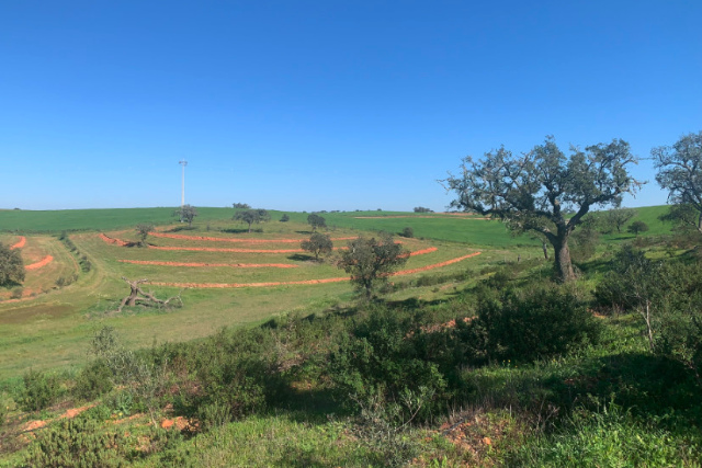 Quando aqui comecei a instalar-me, em 2016, estavam somente sobreiros, azinheiras, algumas oliveiras, marmeleiros e romanzeiras na horta, que é a zona de vale principal. Compreendendo que o maior desafio desta terra é e será a falta de água, optei por organizar as plantações em sistema keyline, para que pudesse reter o máximo de água (aquando das chuvadas) e esta fosse encaminhada para as zonas mais secas. A produção é, sempre foi e enquanto for eu a cuidar deste lugar, em modo biológico. Aliás, a certificação é desde o início em modo biológico, mas eu sempre quis ir além disso…